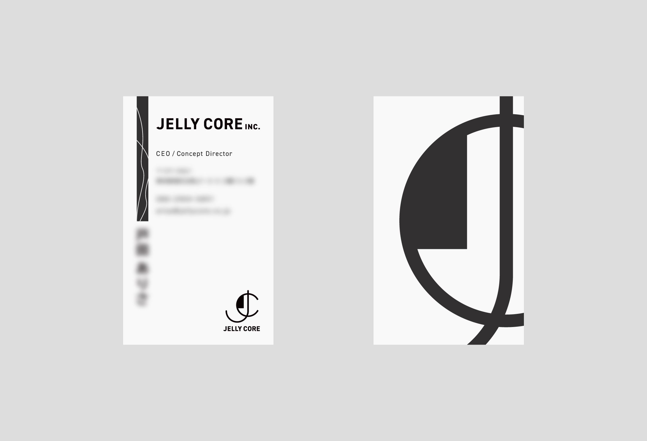 コピー制作、企画、コーポレートブランディング、メディア立ち上げなど、さまざまな角度から企業のコンセプトメイク、ブランディング、事業開発、プロモーションを行う会社JELLY CORE株式会社の法人化に伴いコーポレートロゴ、名刺のデザインを担当しました。