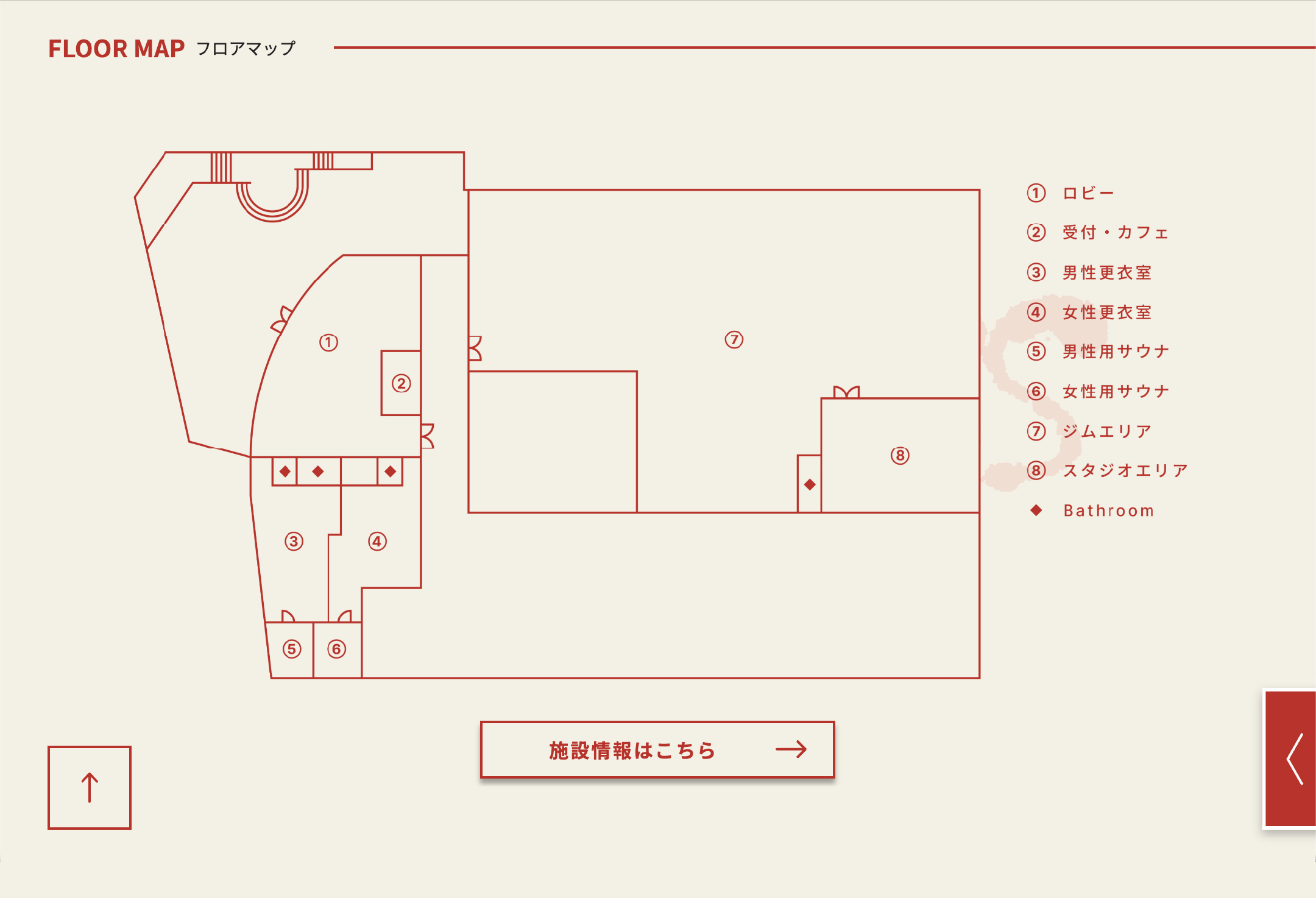 背景には淡いクリーム色を採用し、比較的華奢な文字や装飾を施し、余白も余裕を持ってとっています。もちろんトレーニーの心も刺激できるように、ロゴのカラーの赤も配色に使っています。